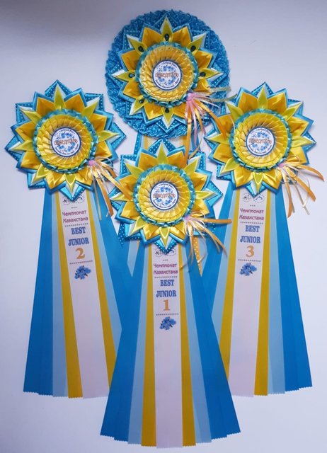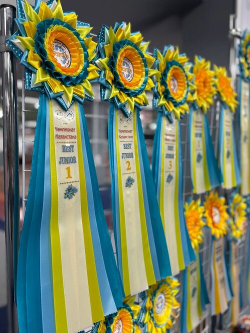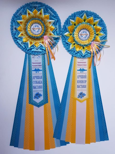 Розетки "Чемпионат Казахстана" лучшая собака выставки и лучший юниор выставки