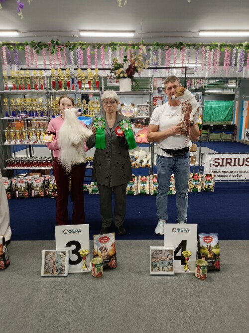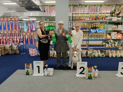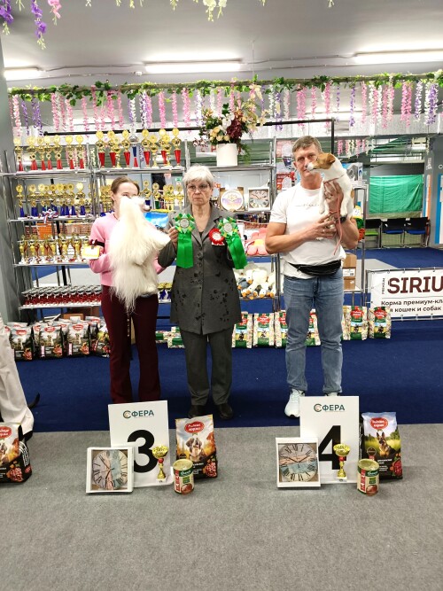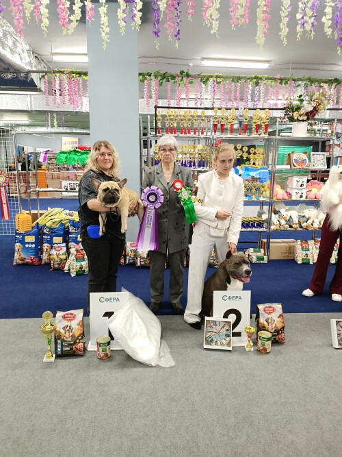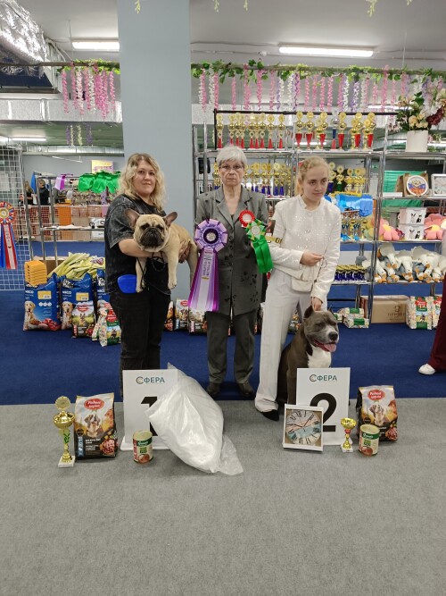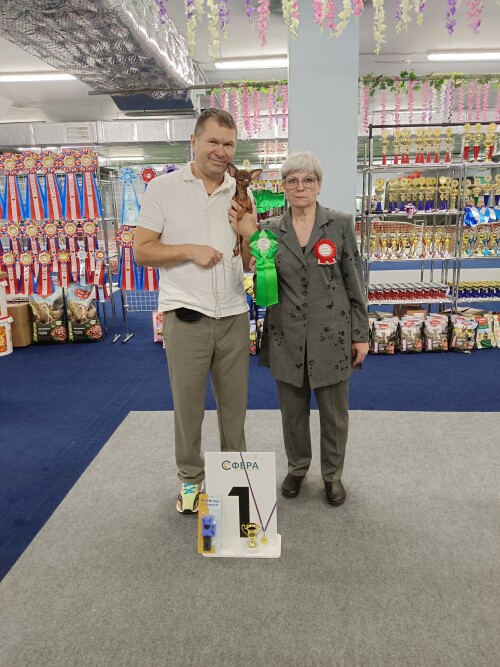 РЕЗУЛЬТАТЫ ВЫСТАВОК "КУБОК ОТЕЧЕСТВА» БЕСТ БЭБИ 1 место- РОТВЕЙЛЕР ТРЕЙСИ-VICTORIA ЭВЕРЕСТ РЭМ ВЛ. ФИСТИК 2 место- НЕМЕЦКИЙ ШПИЦ МИНИАТЮРНЫЙ ЗЛАТОВЛАСКА ТЕНЕССИ ВЛ. ЧОВНОВАЯ 3 место- ФРАНЦУЗСКИЙ БУЛЬДОГ БЛЭК ШТЕРН ДЖОНАТАН ВЛ. ЩЕРБАЧЕНКО 4 место- ТАКСА МИНИАТЮРНАЯ Г/Ш БЕГУЩАЯ ПО ВОЛНАМ ВЛ. ПЕТРОВА БЕСТ ЩЕНКОВ 1 место- АМЕРИКАНСКИЙ СТАФФОРДШИРСКИЙ ТЕРЬЕР ТРЕЙСИ-VICTORIA ЮНАЙТ ХАН ВЛ. КУЗНЕЦОВА 2 место- ПАТТЕРДЕЙЛ ТЕРЬЕР RUSSIAN BULL’S NEVER BLACK SUN ALEXA вл. АКИМОВА 3 место- ТАКСА СТАНДАРТНАЯ Г/Ш ЛАККИ ЛИТЛ ЛЕДИ ВЛ. ИВАНОВ 4 место- НЕМЕЦКИЙ ШПИЦ МАЛЫЙ АФРОДИТА ТЕНЕССИ ВЛ. ЗОЛОТОВА БЕСТ ВЕТЕРАНОВ 1 место- ТАКСА СТАНДАРТНАЯ Г/Ш ГОЛДЕН ДРИМ ГРЕЙЯ ОФ БЬЮТИ ВЛ. УСТЕНКО 2 место- КИТАЙСКАЯ ХОХЛАТАЯ СОБАКА (ПУХ) EXTRAVAGANZA BAND ENIGMA ow. DAVYDOVA 3 место- СИБИРСКИЙ ХАСКИ ИНТЕЛЛЕГЕНТ ГАЙ ВЛ. НИКИТИНА 4 место- ТАКСА КРОЛИЧЬЯ Д/Ш АРМИДАЧ ВУНШПУНШ ВЛ. РУМЯНЦЕВА БЭСТ ЮНИОРОВ МАЛЕНЬКИЕ ПОРОДЫ 1 место- ФРАНЦУЗСКИЙ БУЛЬДОГ (ЦВЕТНЫЕ) КРУЗ ТЕЙСОН ВЛ. ОГАНДЖАНЯН 2 место- НЕМЕЦКИЙ ШПИЦ МАЛЫЙ КАПИТАН РОКСИ ВЛ. АРАЛОВА 3 место- ТАКСА МИНИАТЮРНАЯ Г/Ш ЛЮТИК РУС БРАМЕРС ГАЛИЛЕО ВЛ. ЯН СРЕДНИЕ ПОРОДЫ 1 место- АНГЛИЙСКИЙ БУЛЬДОГ ДАЙНЕРИС МОН СЕНЬОР ДАНИЭЛЬ КАРОЛЬ ВЛ. АНТОНОВА 2 место- АМЕРИКАНСКИЙ ПИТБУЛЬТЕРЬЕР ДЖАМБО ВЛ. ГОЛЫШЕВА 3 место- АМЕРИКАНСКИЙ КОКЕР СПАНИЕЛЬ ЕВА ИЗ ZUBARI RICHI ВЛ. КОЧКОВА КРУПНЫЕ ПОРОДЫ 1 место- БУРБУЛЬ NARCO BARON BLACK STAR ВЛ. ЕГОРОВА 2 место- СИБИРСКИЙ ХАСКИ БЕЛЛА ЛЕДИ ДИ ВЛ. САВЕНКО 3 место- ЛАБРАДОР РЕТРИВЕР ЖГУЧАЯ ЛЮБОВЬ ВЛ. ЗАХАРКИН ЛУЧШИЙ ЮНИОР ВЫСТАВКИ БУРБУЛЬ NARCO BARON BLACK STAR ВЛ. ЕГОРОВА БОЛЬШОЙ БЭСТ МАЛЕНЬКИЕ ПОРОДЫ 1 место- ТАКСА МИНИАТЮРНАЯ Г/Ш ДАЧЛИБЭЛЬ БЕНЕДИКТ ВЛ. ЗВЯГИНЦЕВА 2 место- ФОКСТЕРЬЕР Ж/Ш БЕЙТ МАРТАВИК ЭЛИЗАБ БЕТ ВЛ. ФЕТИСОВ 3 место- ПУДЕЛЬ ТОЙ БЕСКОНЕЧНАЯ ЭНЕРГИЯ ВОТБ ВЛ. ОБЕРТАЕВА СРЕДНИЕ ПОРОДЫ 1 место- БУЛЬТЕРЬЕР RUS TERER ZLATA LUCIA VICTORIA ВЛ. ЗАТЫРКЕВИЧ 2 место- АНГЛИЙСКИЙ БУЛЬДОГ ДАЙНЕРИС МОН СЕНЬОР ДАНИЭЛЬ КАРОЛЬ ВЛ. АНТОНОВА 3 место- АМЕРИКАНСКИЙ СТАФФОРДШИРСКИЙ ТЕРЬЕР ТРЕЙСИ-VICTORIA ТЕТРИС РОККИ СЛАВА ВЛ. ОЛЕЙНИК КРУПНЫЕ ПОРОДЫ 1 место- СИБИРСКИЙ ХАСКИ БЕЛЛА ЛЕДИ ДИ ВЛ. САВЕНКО ЛУЧШАЯ СОБАКА ВЫСТАВКИ БУЛЬТЕРЬЕР RUS TERER ZLATA LUCIA VICTORIA ВЛ. ЗАТЫРКЕВИЧ РЕЗУЛЬТАТЫ ВЫСТАВОК "ЧЕМПИОНАТ КАЗАХСТАНА» БЕСТ БЭБИ 1 место- АМЕРИКАНСКИЙ СТАФФОРДШИРСКИЙ ТЕРЬЕР ДОДЖ УРУС ВЛ. СОСНОВА 2 место- НЕМЕЦКИЙ ШПИЦ МИНИАТЮРНЫЙ ЗОЛУШКА ТЕНЕССИ ВЛ. УХАБОВА 3 место- РОТВЕЙЛЕР ТРЕЙСИ-VICTORIA ЭВЕРЕСТ РЭМ ВЛ. ФИСТИК 4 место- ФРАНЦУЗСКИЙ БУЛЬДОГ БЛЭК ШТЕРН ДЖОНАТАН ВЛ. ЩЕРБАЧЕНКО БЕСТ ЩЕНКОВ 1 место- ТАКСА СТАНДАРТНАЯ Г/Ш ЛАККИ ЛИТЛ ЛЕДИ ВЛ. ИВАНОВ 2 место- НЕМЕЦКИЙ ШПИЦ МАЛЫЙ АФРОДИТА ТЕНЕССИ ВЛ. ЗОЛОТОВА 3 место- БЕЛЬГИЙСКИЙ ГРИФФОН ВАЛЕНСИЯ НЭРИС ВЛ. АЛЁШИНА 4 место- ПАТТЕРДЕЙЛ ТЕРЬЕР RUSSIAN BULL’S NEVER GIVE UP ВЛ. БРАГИНА БЕСТ ВЕТЕРАНОВ 1 место- СИБИРСКИЙ ХАСКИ ИНТЕЛЛЕГЕНТ ГАЙ ВЛ. НИКИТИНА 2 место- КИТАЙСКАЯ ХОХЛАТАЯ СОБАКА (ПУХ) EXTRAVAGANZA BAND ENIGMA ow. DAVYDOVA 3 место- ТАКСА СТАНДАРТНАЯ Г/Ш ГОЛДЕН ДРИМ ГРЕЙЯ ОФ БЬЮТИ ВЛ. УСТЕНКО 4 место- ТАКСА КРОЛИЧЬЯ Д/Ш АРМИДАЧ ВУНШПУНШ ВЛ. РУМЯНЦЕВА БЭСТ ЮНИОРОВ МАЛЕНЬКИЕ ПОРОДЫ 1 место- ФРАНЦУЗСКИЙ БУЛЬДОГ (ЦВЕТНЫЕ) КРУЗ ТЕЙСОН ВЛ. ОГАНДЖАНЯН 2 место- НЕМЕЦКИЙ ШПИЦ МАЛЫЙ КАПИТАН РОКСИ ВЛ. АРАЛОВА 3 место- ТАКСА СТАНДАРТНАЯ Г/Ш САЙЛЕНТ ХИЛЛ ВЛ. ЯН СРЕДНИЕ ПОРОДЫ 1 место- ВЕЛЬШ КОРГИ КАРДИГАН ВАН ЛЕН ТАЙМ ЖАНПОЛЬ II ВЛ. МОРОЗОВА 2 место- АНГЛИЙСКИЙ БУЛЬДОГ ФРЕДДИ КАРОЛЬ ВЛ. ИБРАГИМОВА 3 место- АМЕРИКАНСКИЙ КОКЕР СПАНИЕЛЬ ЕВА ИЗ ZUBARI RICHI ВЛ. КОЧКОВА КРУПНЫЕ ПОРОДЫ 1 место- СИБИРСКИЙ ХАСКИ БЕЛЛА ЛЕДИ ДИ ВЛ. САВЕНКО 2 место- БУРБУЛЬ NARCO