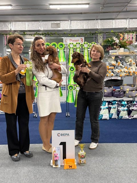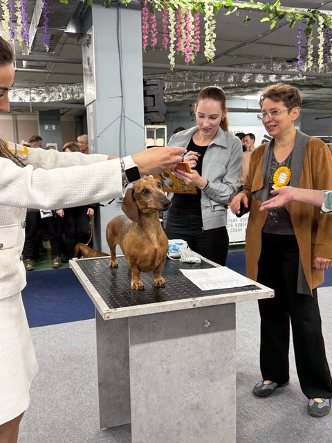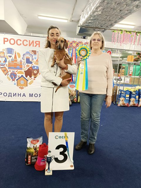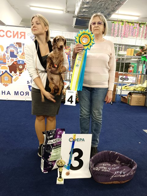 РЕЗУЛЬТАТЫ МОНОПОРОДНОЙ ВЫСТАВКИ ТАКСА БЭСТ БЭБИ 1 место- ТАКСА СТАНДАРТНАЯ Г/Ш МАРТИ ИГНИС РАЙДО ВЛ. ЛИТОВА 2 место- ТАКСА МИНИАТЮРНАЯ Г/Ш БЕГУЩАЯ ПО ВОЛНАМ ВЛ. ПЕТРОВА БЭСТ ЩЕНКОВ 1 место- ТАКСА КРОЛИЧЬЯ Д/Ш АСТРАНЦИЯ ОТ ЦВЕТ-ЛАНЫ ВЛ. РУМЯНЦЕВА 2 место- ТАКСА СТАНДАРТНАЯ Г/Ш ЛАККИ ЛИТЛ ЛЕДИ ВЛ. ИВАНОВ БЭСТ ЮНИОРОВ 1 место- ТАКСА СТАНДАРТНАЯ Г/Ш ТЕККЕЛ’C МЕДЖИК БУСИНКА ЯНТАРНАЯ ВЛ. ХРОМОВА 2 место- ТАКСА МИНИАТЮРНАЯ Г/Ш ЛЮТИК РУС БРАМЕРС ГАЛИЛЕО ВЛ. ЯН 3 место- ТАКСА МИНИАТЮРНАЯ Д/Ш ЗОЛОТАЯ ТАКСА ЖОРИК ВЛ. ТУЧИНА БЭСТ ВЕТЕРАНОВ 1 место- ТАКСА СТАНДАРТНАЯ Г/Ш ГОЛДЕН ДРИМ ГРЕЙЯ ОФ БЬЮТИ вл. УСТЕНКО 2 место- ТАКСА КРОЛИЧЬЯ Д/Ш АРМИДАЧ ВУНШПУНШ ВЛ. РУМЯНЦЕВА БОЛЬШОЙ БЭСТ 1 место- ТАКСА КРОЛИЧЬЯ Г/Ш ЛУННАЯ СОНАТА АРАГОРН ВЛ. КАРТАШОВ 2 место- ТАКСА МИНИАТЮРНАЯ Г/Ш ДАЧЛИБЭЛЬ БЕНЕДИКТ ВЛ. ЗВЯГИНЦЕВА 3 место- ТАКСА СТАНДАРТНАЯ Г/Ш ГОЛДЕН ДРИМ ГРЕЙЯ ОФ БЬЮТИ вл. УСТЕНКО 4 место- ТАКСА МИНИАТЮРНАЯ Ж/Ш МОККО МАКСИМУМ ЭКСКАЛИБУР ВЛ. РУМЯНЦЕВА