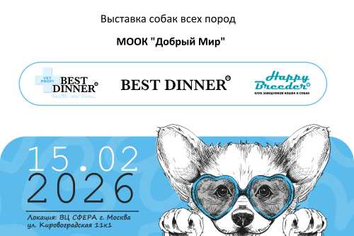 15.02.2026 г. МООК "Добрый мир" приглашает на выставки: "Чемпионат России"-ранг САCIB "Чемпионат Беларуси"-ранг САCIB Фестиваль собак компаньонов, фестиваль охотничьих пород тел. офиса (499)393-31-61, 8-925-422-43-51, 8-926-810-90-90 эл. почта sid8850@ya.ru В рамках выставок будут проводиться конкурсы, в которых могут участвовать собаки экспонировавшиеся на данных выставках, заранее записанные. Записаться на конкурсы можно на выставке. Все конкурсы проводятся по окончанию экстерьерных рингов. Запись на конкурсы бесплатная. 1. Конкурс "Ребенок и собака" (дети до 12 лет) 2. "Гордость России" (ЛПП, только для отечественных пород) 3. "Гордость Доброго Мира (для собак с родословной Доброго Мира, имеющих титулы: Интер-Чемпион, Абсолютный Чемпион") 4. Конкурс питомников (участвуют от 3 до 5 собаки одной породы, рожденные в одном питомнике, имеющие одну заводскую приставку) 5. Конкурс пар (участвуют 2 собаки одной породы кобель и сука, принадлежащие одному владельцу. Пару выставляет один хэндлер.) 6. Конкурс производителей (участвуют производитель или производительница и от 3 до 5 потомков) 7. Конкурс костюмов